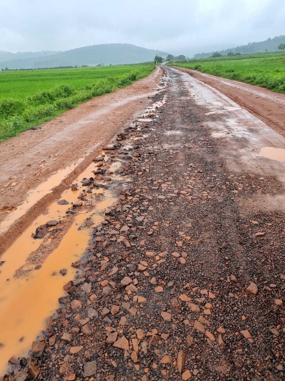 तस्वीरें हैं बगीचा को सन्ना पाठक्षेत्र से जोड़ने वाली सबसे नजदीकी सड़क “राजपुरी रोड” की, ये वही मार्ग है जिसमें सफ़र कर सैकड़ों गांवों के लोग अपने विकासखण्ड मुख्यालय पहुंचते हैं ! ऐसा नहीं है कि प्रदेश सरकार ने आंखें बंद कर रखी है, सरकार ने करोड़ों रुपए दिए हैं इस रास्ते को बनाने के लिए, लगभग डेढ़ साल पहले ही करोड़ों रुपए के लागत से बनने वाली इस सड़क का जशपुर विधानसभा के लोकप्रिय विधायक विनय भगत जी के द्वारा सन्ना के “वाहन विराम स्थल” में पंडाल के नीचे पण्डित जी के मंत्रोचारण के संग विधिवत पूजा अर्चना कर भुमिपुजन कर कार्य प्रारंभ की घोषणा की गई थी ! भुमिपुजन के पश्चात संबंधित ठेकेदार के द्वारा बड़े जोर शोर से सड़क निर्माण के कार्य की शुरुआत की गई, आवागमन में सहायक मार्ग को धड्डले से उखाड़ दिया गया और फिर अचानक ही कार्य बंद कर दिया गया ! लगे लगे बरसात की शुरुआत हो गई और कामगारों को काम बंद रखने का बहाना मिल गया,, कुछ दिनों तक तो लोग कलेजे में पत्थर रखकर इस मार्ग पर सफर करते रहे, छोटी मोटी दुर्घटनाएं होती रहीं कभी मोटरसाइकिल से गिरकर किसी का घुटना चटका तो किसी का सर फुटा पर बरसात के गहराते ही परिस्थितियां बद से बद्तर हो गई, सड़कें गढ्ढों पर तैरने लगी और आने जाने वाले लोग जगह देख देखकर छलांगें लगाने लगे !