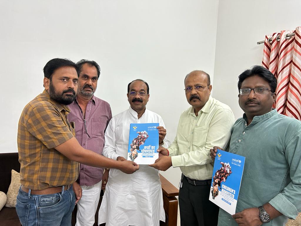 रायपुर – छत्तीसगढ़ के सभी राजनीतिक दलों को ’20 सूत्रीय ‘बाल घोषणापत्र’ सौंपा गया । इसके तहत सीसीआरओ और यूनिसेफ के वरिष्ठ सदस्यों के प्रतिनिधिमंडल ने राजनीतिक दलों के राज्य और जिला अध्यक्षों के साथ व्यक्तिगत रूप से मुलाकात की और पार्टी के घोषणापत्र में गुणवत्तापूर्ण स्कूल, पारंपरिक खेल और पुस्तकालय के लिए बच्चों की मांग को शामिल करने का अनुरोध किया।