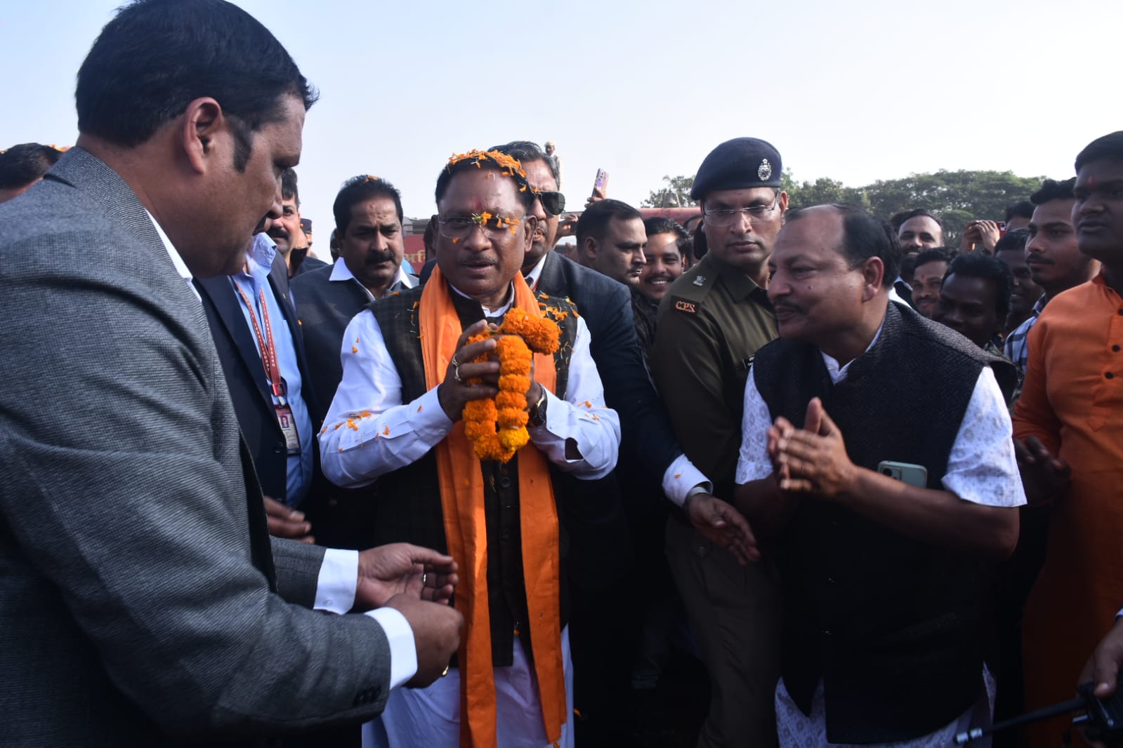 छत्तीसगढ़ प्रदेश के चौथे मुख्यंमत्री के रूप में सपथ ग्रहण करने के बाद अपने गृह जिला जशपुर नगर में प्रथम आगमन पर मुख्यमंत्री विष्णु देव साय का स्थानीय पुलिस लाइन हैलीपेड पर जबरजस्त स्वागत किया गया !