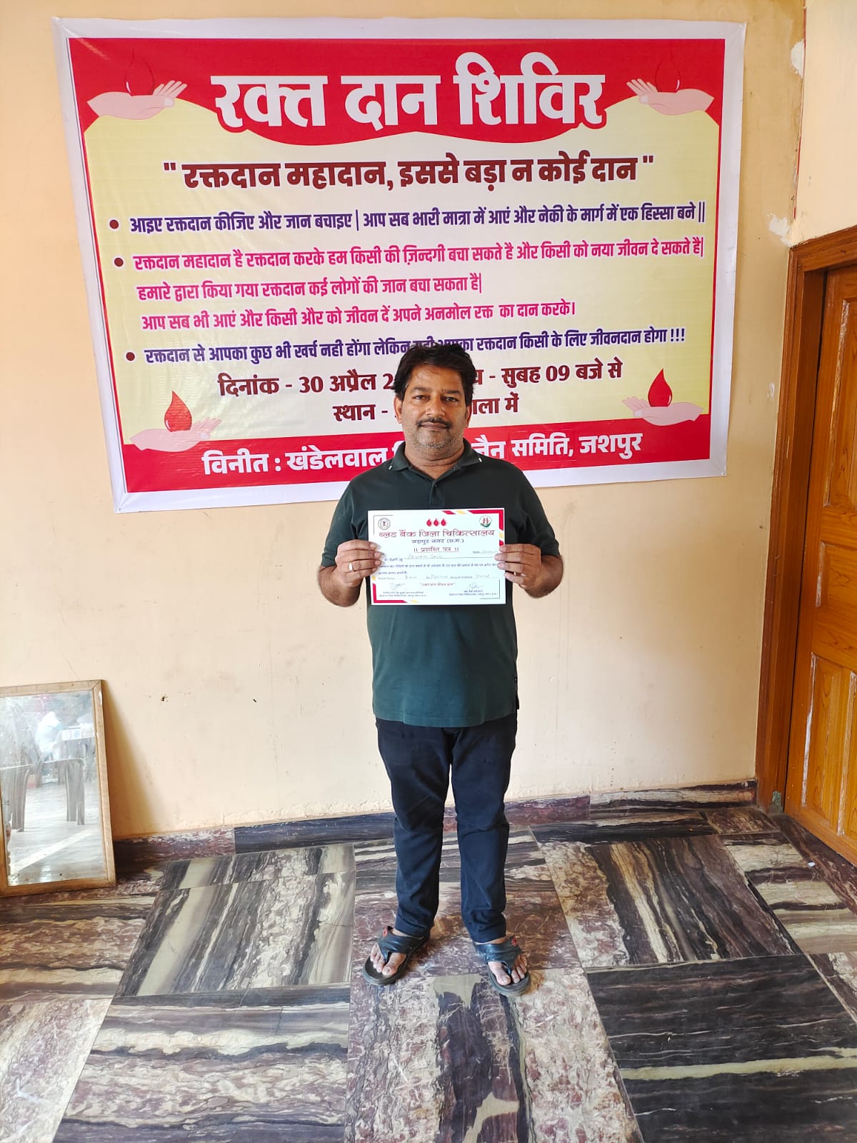 रतनलाल जैन ने जिला प्रशासन और जिला रेडक्रॉस समिति का विशेष आभार प्रकट किया और बताया कि इस प्रकार का सहयोग समस्त समाज के द्वारा प्रशासन को सहयोग मिलता रहे, इस रक्तदान शिविर को सफल बनाने में प्रवीण जैन, अजय जैन दिलीप जैन एवं जैन समाज के सभी पदाधिकारियों का विशेष सहयोग रहा ।