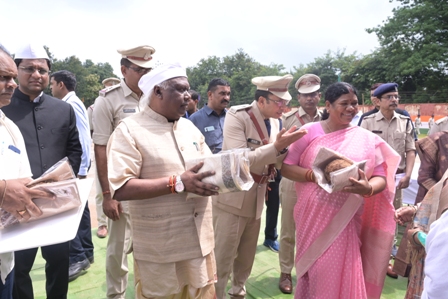 ✒️ लोकसभा क्षेत्र सरगुजा के सांसद श्री चिंतामणी महाराज व जशपुर विधायक श्रीमती रायमुनी भगत ने 15 अगस्त स्वतंत्रता दिवस के अवसर पर जशपुर के रणजीता स्टेडियम में आयोजित जिला स्तरीय कार्यक्रम में जिले के 56 वीर शहीद जवानों के परिजनों को शॉल श्रीफल देकर सम्मानित किया गया।