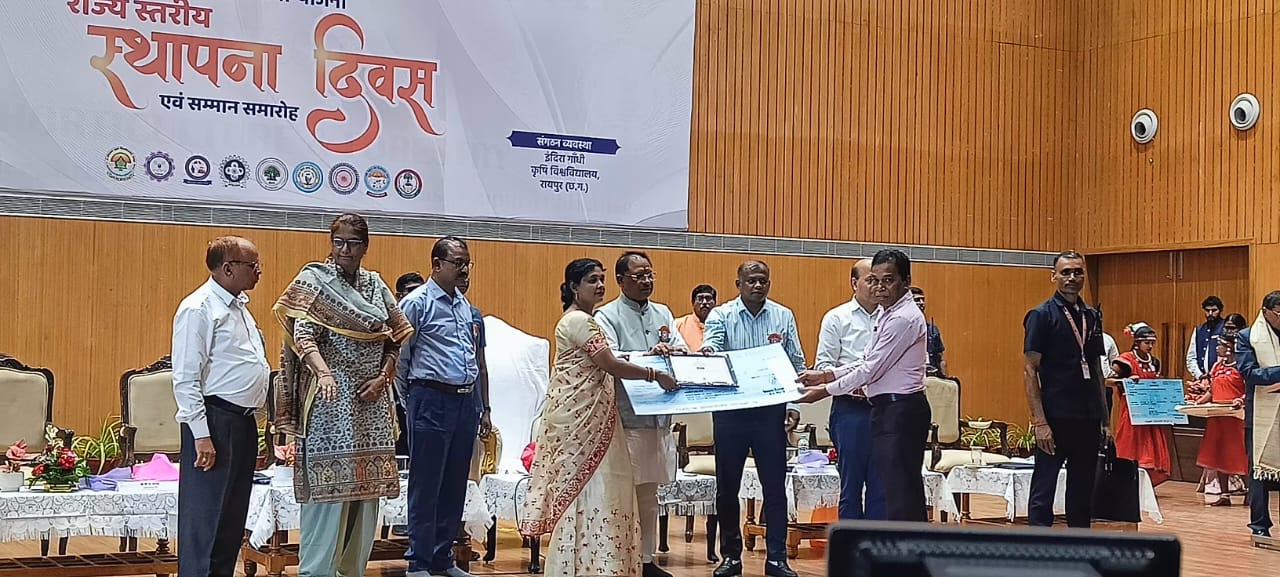यह पुरस्कार विगत दिवस 23 सितम्बर 2024 को मुख्यमंत्री श्री विष्णुदेव साय के द्वारा कृषि महाविद्यालय रायपुर के ऑडिटोरियम में राष्ट्रीय सेवा योजना की स्थापना दिवस पर दिया गया । पुरस्कार के रूप में प्रशस्ति पत्र एवं 11 हजार का चेक प्रदान किया गया ।